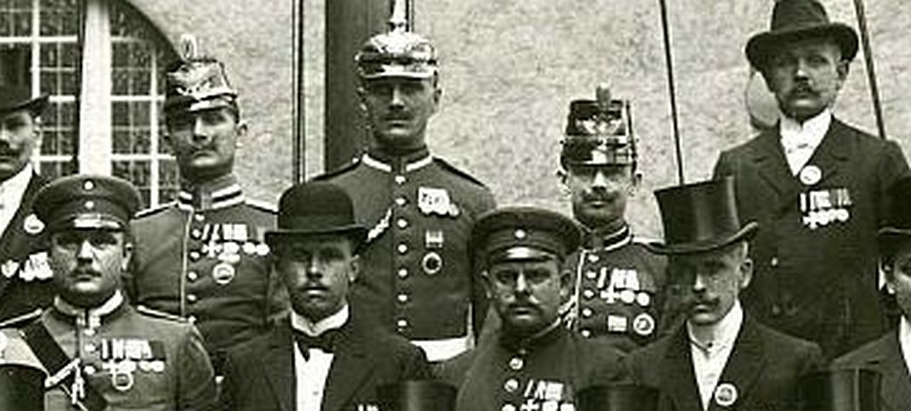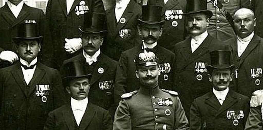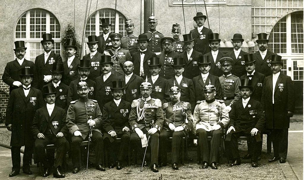 Ein sicherlich interessantes Foto, nur ist mir leider völlig unbekannt wer da wann posiert. Auch frage ich mich, warum der Herr in der zweiten Reihe keinen Zylinder aufhat.